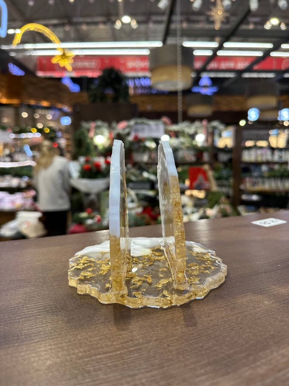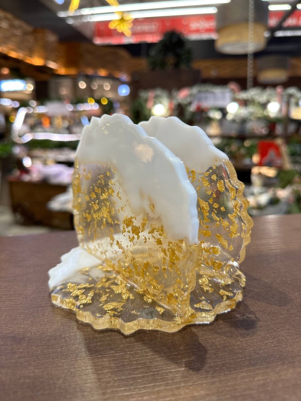 Неповторимо нежное сочетание белой окрашенной смолы и золотой листовой потали. возможно собрать набор с подставками, мисочками, фруктовницей или вазой этажеркой